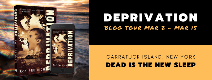 Today we bring you a thrilling excerpt from Roy Freirich’s new book, DEPRIVATION. This is an edge-of-your-seat thriller about a bout of mass insomnia that hits Carratuck Islanders. Temporarily cut-off from the mainland with no sleep in site, all heck breaks loose and three well-developed characters, Sam, the local doctor, Chief, the local head of police, and Cort, a teen caught up in a seemingly innocent online game (#sleepless43) where the goal of the game is to stay awake the longest. When a boy shows up on the beach alone and mute, islanders become suspicious that he is somehow responsible for the outbreak of insomnia that is wreaking havoc. A deadly game of chase ensues. We especially loved Cort and hope you’ll read the excerpt we’ve shared below! A piece of advice, BUY THIS BOOK! It is everything you want in a high suspense thriller written in a beautiful literary style.